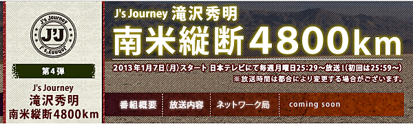 「J’J 瀧澤秀明南米縱斷 4800km」日本NTV台 2013年1月7日首播