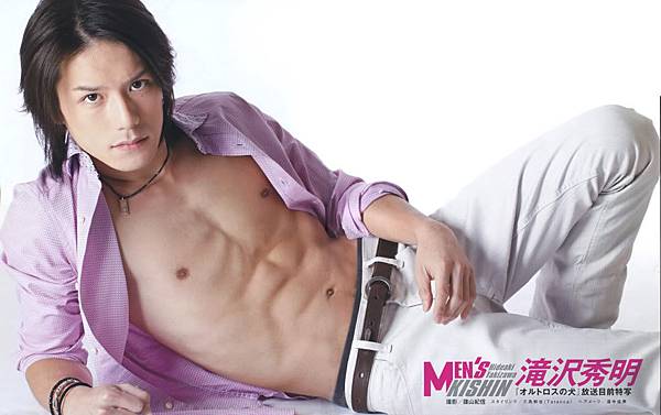 (談到自己的小腹肌,瀧澤秀明解釋說:「其實並沒有時間到健身室去鍛煉身體,也沒有做運動的習慣,身上的肌肉大概是在上跳舞課的時候鍛煉出來的。但為了取得肌肉平衡,睡覺前會做做仰臥起坐。
